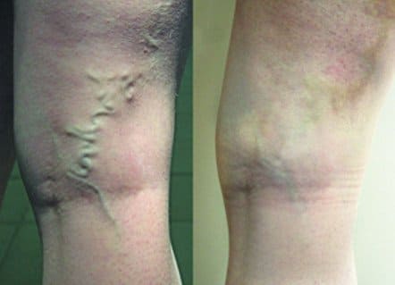 Żyły w pełni przywrócone. Czas trwania kuracji wynosi 2 tygodnie.
